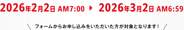 2026年2月2日AM 7:00~2026年3月2日AM 6:59まで