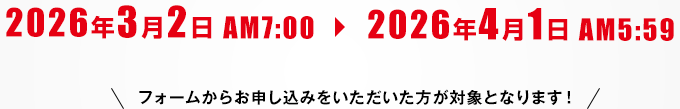 2026年3月2日AM 7:00~2026年4月1日AM 5:59まで